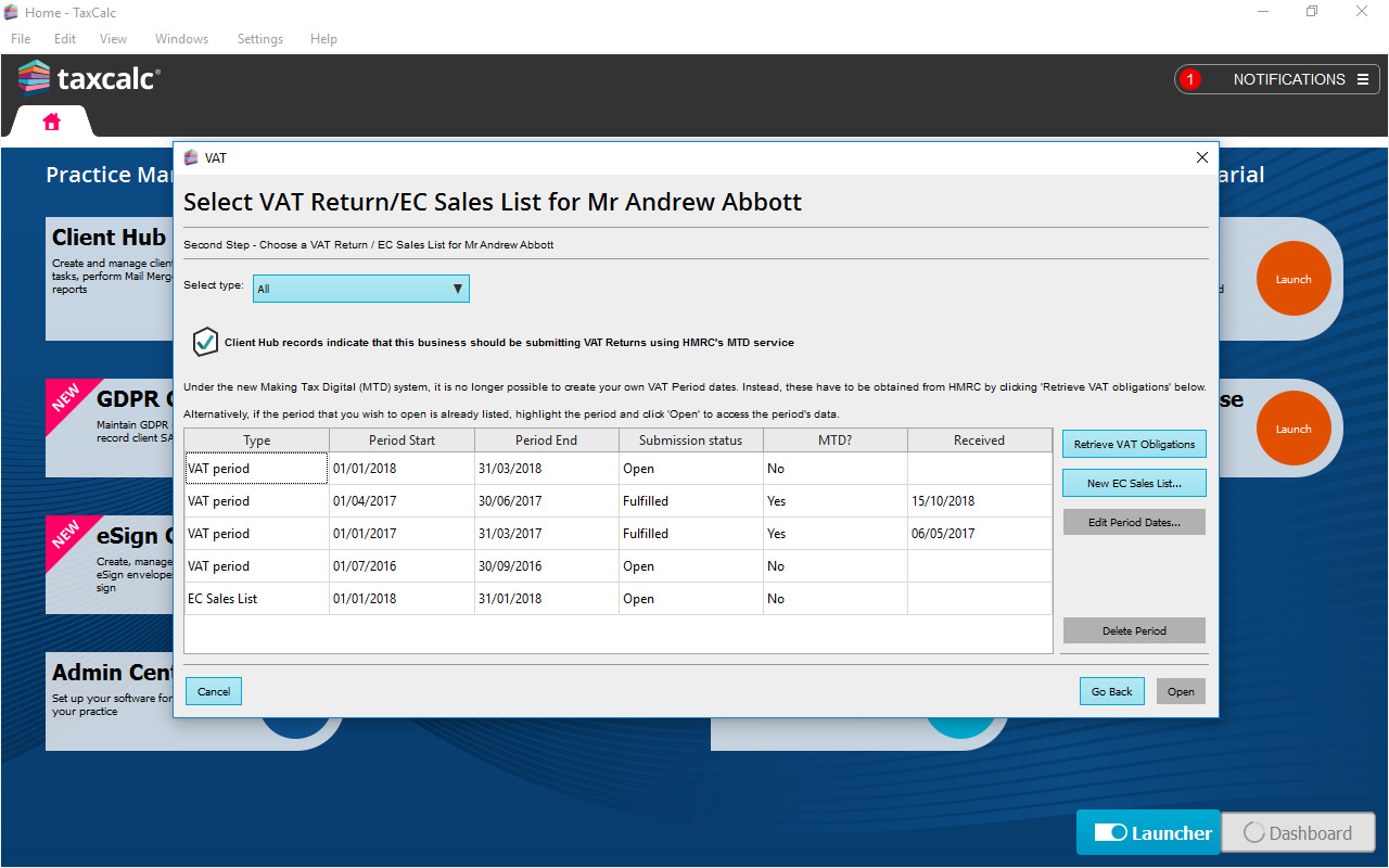 - Use TaxCalc Practice Manager to assign work, monitor due dates, create tasks and track the progress of VAT return jobs through your practice