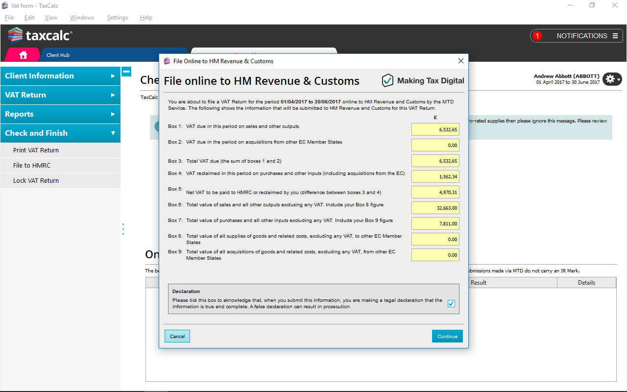 - Create and print the following VAT forms for clients using TaxCalc HMRC Forms: